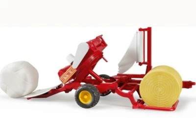 Mit dem Ballenwickler kann der Ballen über die Beladewippe auf den Drehteller gehoben, selbsttätig gedreht (Antrieb bei Fahrt, Simulation von Siliervorgang) und auf die bewegliche Ablagewippe am Heck gekippt werden. Zugdeichselbreite ist nach Verwendungszweck einstellbar.