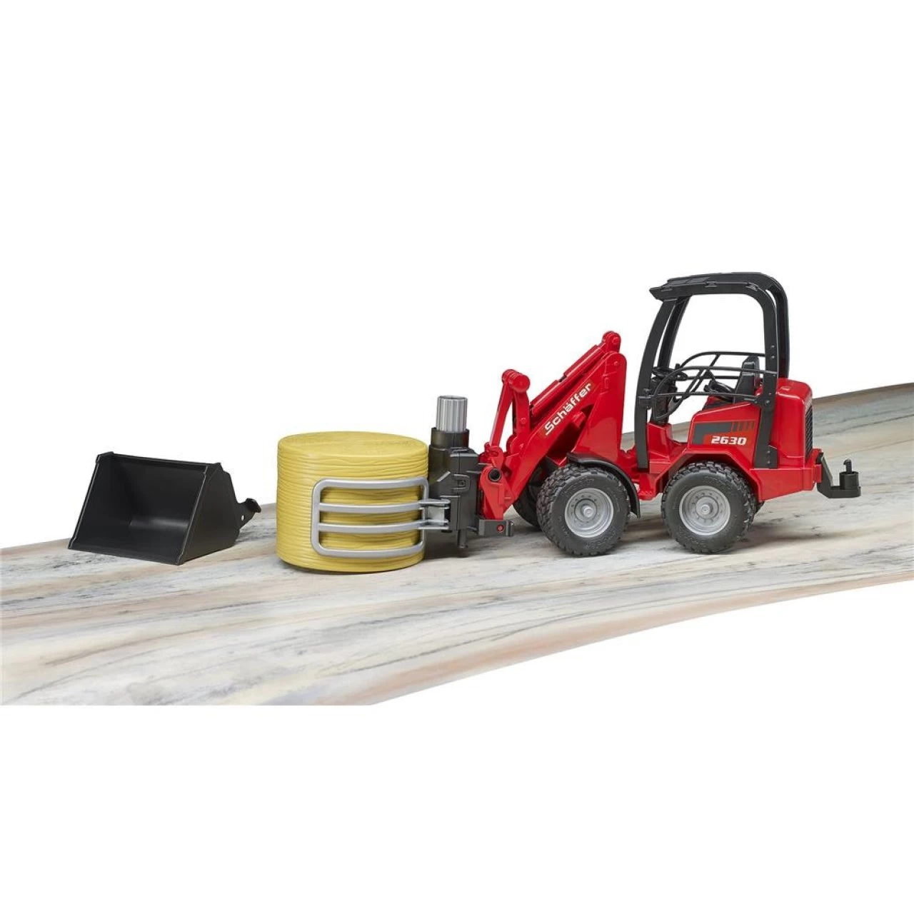 Bruder 02192 – Schäffer Hoflader 02630 mit Ballengreifzange + 1 Rundballen