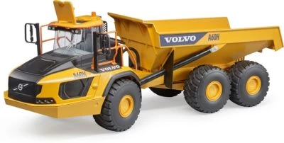 Dumper sind wahre Arbeitstiere! Beim effizienten Transport von Schüttgut im Erdbau, von Asphalt beim Straßenbau, von Abraum in Steinbrüchen und Kieswerken, kann der Dumper seine Stärken ausspielen. Einer der stärksten Dumper, der Volvo A60H, ist neu in der Baumaschinen Themenwelt von BRUDER anzutreffen. Wie beim großen Vorbild, ist die Geländegängigkeit durch die massive Knicklenkung in Verbindung mit den riesigen Ballonreifen vorbildlich. Durch die Dachluke kann eine bworld Figur in der hochmodernen Fahrkabine Platz nehmen und kleine Dumper-Piloten können die originalgetreue, riesige Kippmulde beladen und entleeren.
