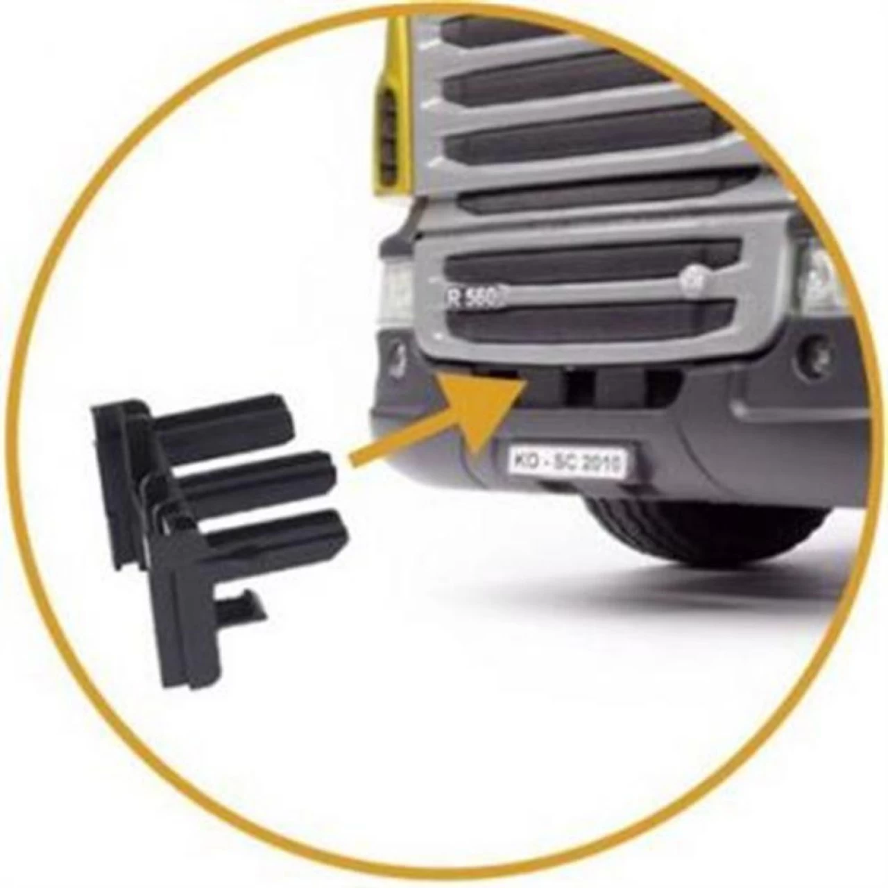 Premium bis ins Detail – das ist der Leitspruch der SCANIA R-Serie. Funktionalität, Verarbeitung und Design dieses Fahrerhauses sprechen für sich. Somit ist es auch keine Überraschung, dass dieses Fahrzeug zum Highlight der LKWs der Profi-Serie von BRUDER wird. Das wie gewohnt detailgetreu nachgebildete Fahrerhaus hat eine Frontscheibe aus bruchsicherem Polycarbonat und bietet die Möglichkeit, das für viele Artikel verfügbare Light and Sound Modul (Art.-Nr.: 02801), zu verwenden. Die Spiegel des SCANIA LKWs können angeklappt und die Türen können geöffnet werden. Der Tiefladerauflieger besitzt eine voll funktionsfähige Drehschemel-Kupplung und die klappbaren Stützen bieten sicheren Halt. Die Auffahrrampen können abgeklappt und die Fahrzeugarretierung zur Sicherung des geladenen Fahrzeugs kann verstellt werden. Das Räumschild des Cat® Bulldozers ist sowohl höhenverstell- und absetz-, als auch kipp- und arretierbar. Zudem können die Aufreißer abgesetzt werden. Zur leichteren Fortbewegung des Car® Bulldozer dienen Laufketten.