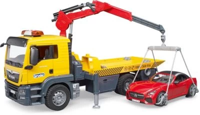 Abschlepp-LKWs sind vielseitige Helfer im Straßenverkehr. Egal ob er havarierte Fahrzeuge auflädt und in die Reparaturwerkstatt bringt oder falsch parkende Fahrzeuge entfernt. Neu im BRUDER Sortiment gibt es den mit vielen Funktionen ausgestatteten MAN TGS Abschlepp-LKW. Um Fahrzeuge bergen zu können kann die Plattform abgesenkt werden. Zusätzlich kann ein Fahrzeug mit dem Hebekran aufgeladen werden. Dieser kann ausgefahren und geschwenkt werden. Dabei ermöglicht das Ladegeschirr bestehend aus Ketten und Radkrallen ein sicheres und schnelles Anheben und Verladen. Unterlegkeile und ausklappbare Stützen bieten sicheren Halt und Profilreifen runden das Fahrzeug ab. Das detailgetreue Fahrerhaus des MAN TGS LKWs besitzt Türen zum Öffnen und die Spiegel des Fahrerhauses können eingeklappt werden. Zusätzlich ist bereits das Light and Sound Modul installiert. Der neue BRUDER Roadster besitzt ein abnehmbares Dach und bietet jeder bworld Figur Platz. Für noch mehr Spielspaß, besitzt der BRUDER Roadster das neue Radwechsel System.