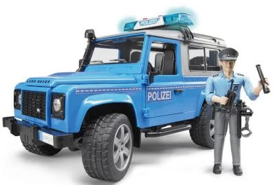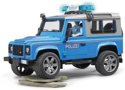 Wie im normalen Leben bleiben die Verkehrsverstöße bei wachsendem Verkehr der vielen BRUDER Fahrzeuge nicht aus. Darum hat sich eine Polizei-Einsatzgruppe gebildet um für Recht und Ordnung zu sorgen. Faszinierende Offroad-Qualitäten kombiniert mit zeitlosem Land Rover-Design machen aus der Polizei-Version des Defender Station Wagons von BRUDER ein schickes und funktionelles Einsatzfahrzeug. Neben der Motorhaube, die einen Blick auf den detaillierten Motorblock ermöglicht, können auch die Heck- und die Seitentüren geöffnet und die Rücksitzbank herausgenommen bzw. die Anhängekupplung abgenommen werden. Durch die Federung beider Achsen wird auch beim Spielen einer Verfolgungsjagd jedes Terrain mit Leichtigkeit gemeistert. Zudem ist die Vorderachse durch die Zusatzlenksäule (im Lieferumfang enthalten) lenkbar und erlaubt so eine spielerische Kontrolle über das Fahrzeug. Der Pistolengürtel mit Taschenlampe, Funkgerät sowie Schlagstock sind wichtige Utensilien für den Einsatz.