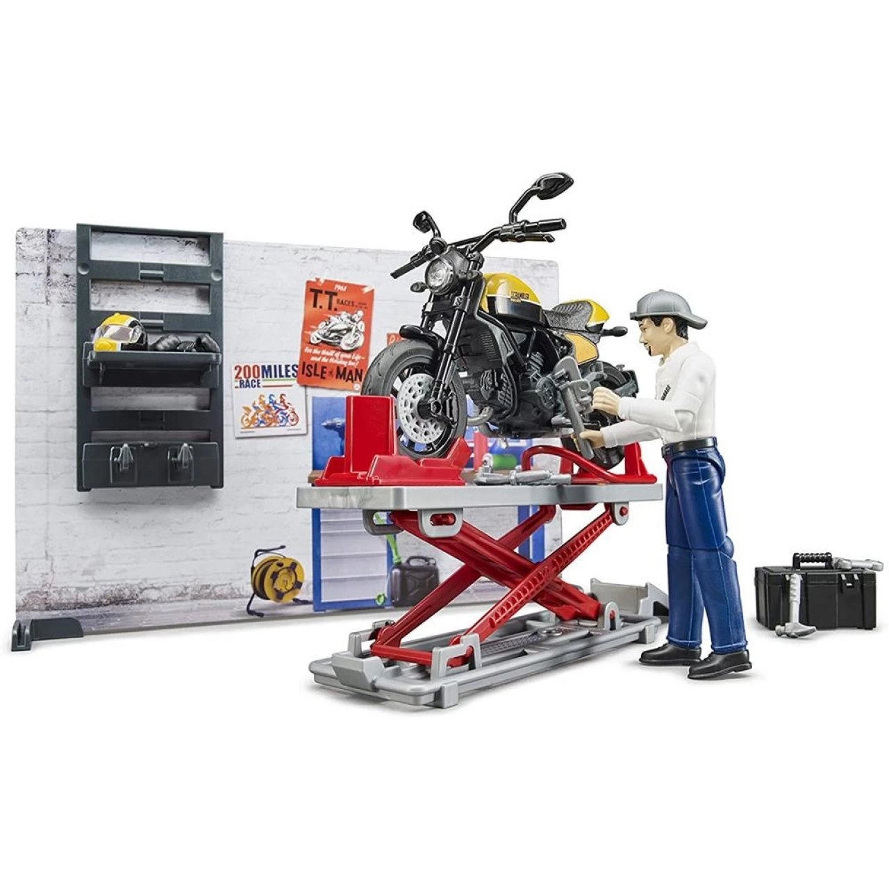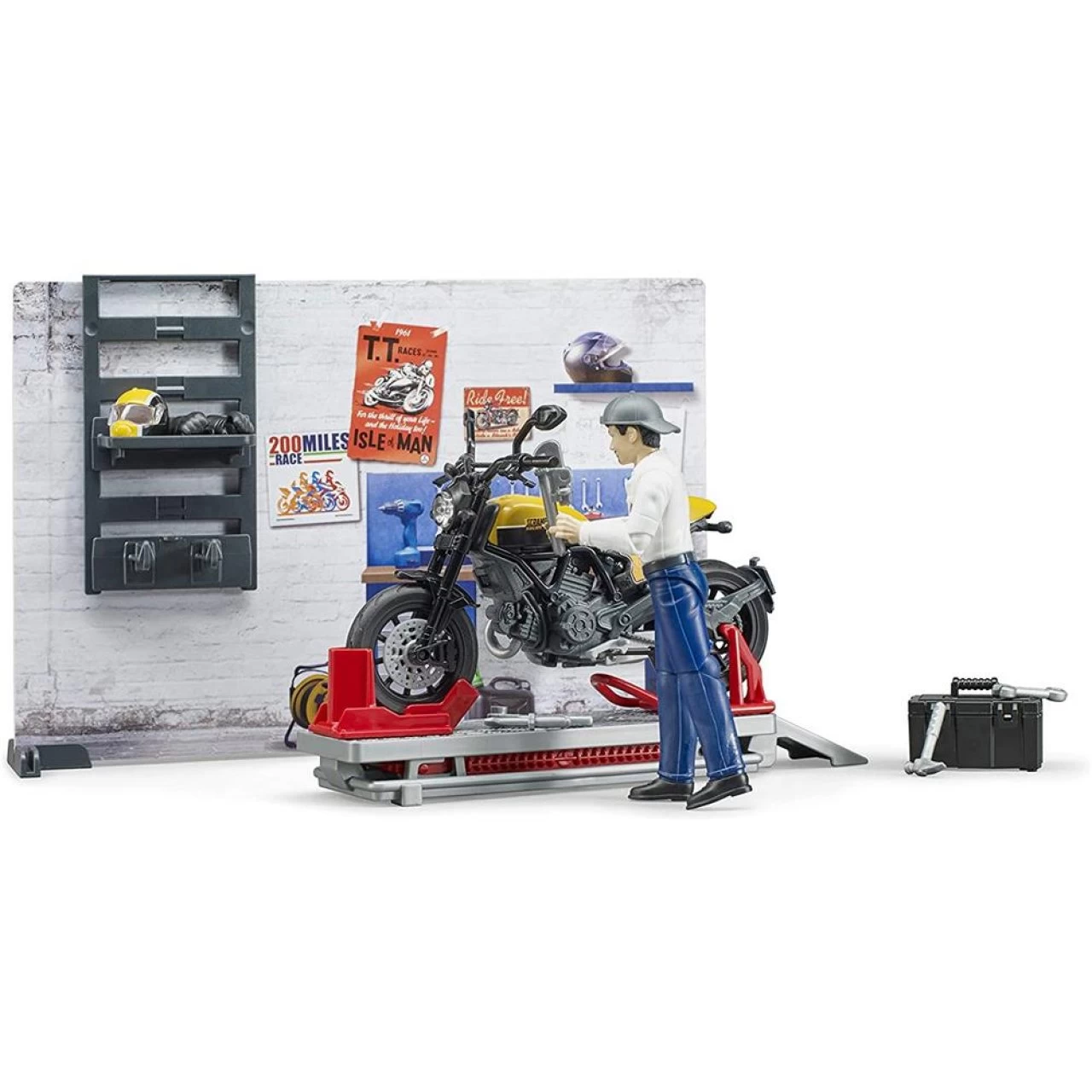 Bruder 62102 Bworld Motorradwerkstatt mit Scrambler Ducati Full Throttle
