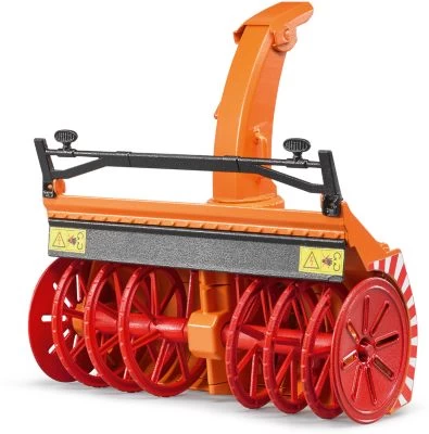 In schneereichen Wintern ist jeder Räumdienst auf effiziente Technik angewiesen. Die neue BRUDER Schneefräse ist „just like the real thing“ mit einer angetriebenen, drehbaren Fräswalze ausgestattet und mit den Traktoren der 2000er, 3000er und 4000er Reihe, LKW’s und dem MB Unimog der Profiserie durch die mitgelieferten Adapter kombinierbar. Damit können Kinder die Schneebeseitigung realistisch nachspielen. Die drehbare Fräswalze wird über ein Reibrad angetrieben. Der Auswurf der Schneefräse kann um 360 Grad gedreht werden.